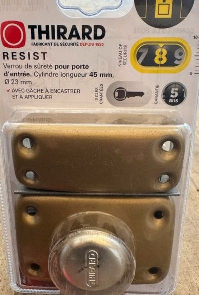 Verrou de sûreté bouton/cylindre 45 mm Thirard Apache + gache encastrer